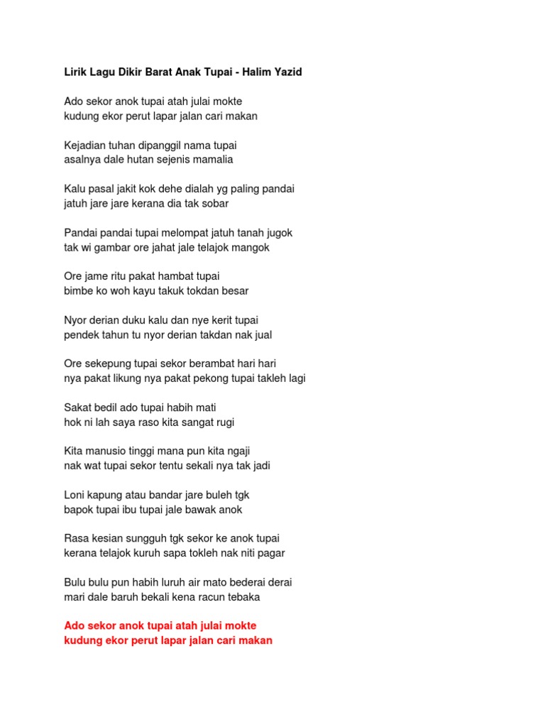 Lirik Lagu Dikir Barat Anak Tupai Pdf